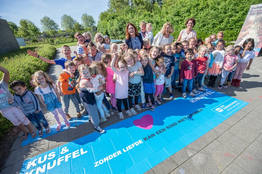 Ouders kunnen hun liefde op 1001 manieren aan hun kinderen tonen. En het moment dat je je kinderen ophaalt of afzet op school is daar een mooi voorbeeld van. Daarom bedachten we de SOS Kus- en knuffelzone, waar ouders hun kinderen elke schooldag nog eens goed vast kunnen pakken voor ze hen aan de goede zorg van de leerkracht overlaten.