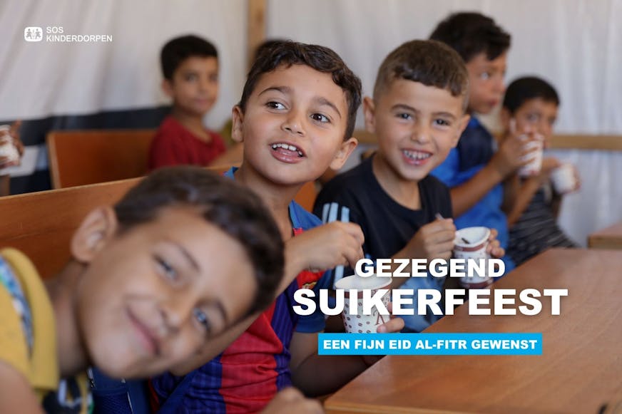Namens iedereen bij SOS Kinderdorpen wensen wij jou en je dierbaren een gezegend Eid: een vreugdevol Suikerfeest vol vrede, dankbaarheid en samenzijn.