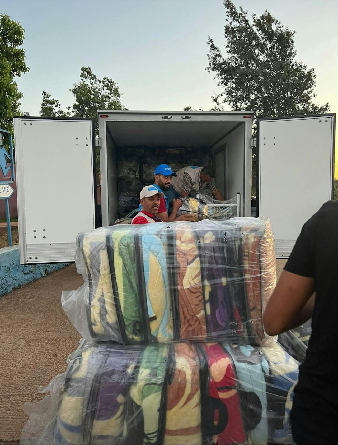 “Gisteren hebben we drie vrachtwagens naar Marrakech gestuurd, gevuld met nieuwe kleding, schoenen, dekens, matrassen en hygiëneproducten. Vandaag is een vrachtwagen onderweg met voedingsmiddelen zoals water, bloem, koekjes en voedselpakketten.”